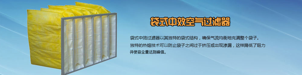 中效袋式過濾器可用于空調系統的中級過濾,以保護系統中下一級過濾器和系統本身,在對空氣凈化潔凈度要求不嚴格的場所,經中效過濾器處理后的空氣可直接送至用戶。鋁框袋式過